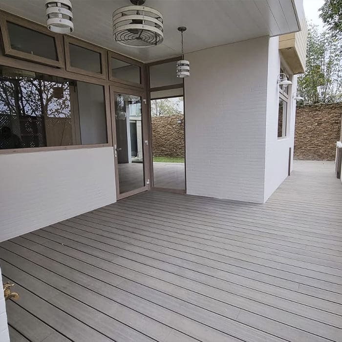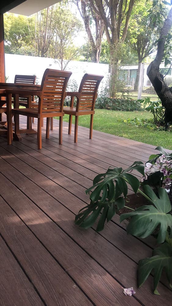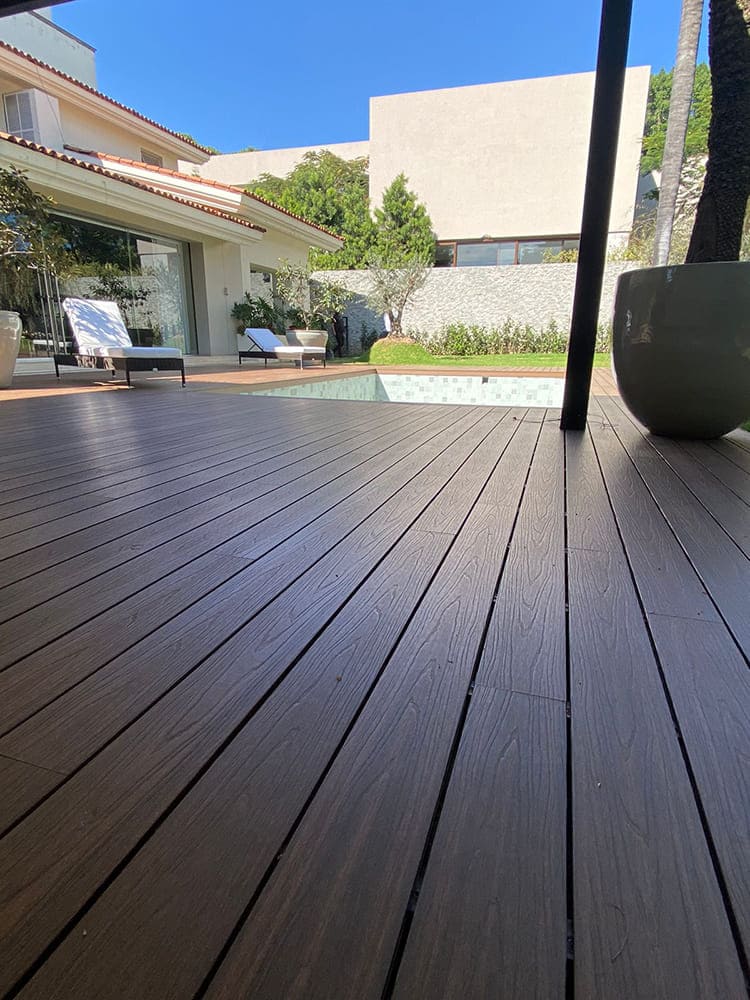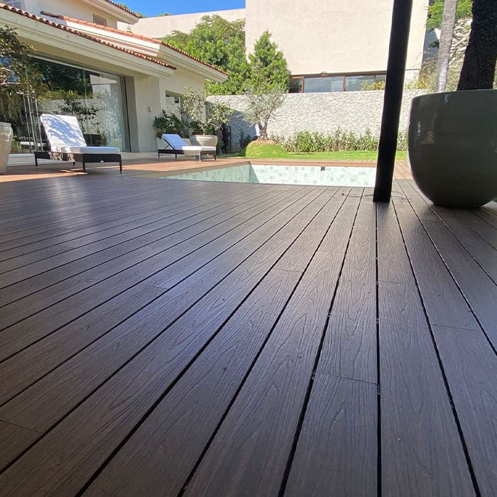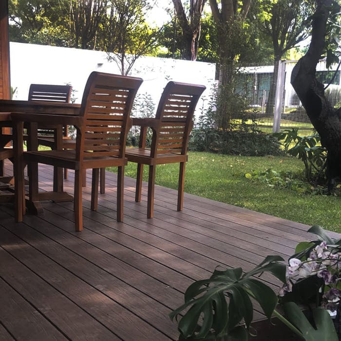 Todos los productos NewTechWood se producen usando 95% de materiales reciclados incluyendo botellas de plástico y fibras de madera, la durabilidad de nuestros productos esta garantizada gracias a la tecnología Ultrashield, una nueva generación de deck compuesto combinando la probada fuerza del plástico de polietileno de alta densidad y fibras de madera con una cubierta de plástico que encapsula completamente la tabla.